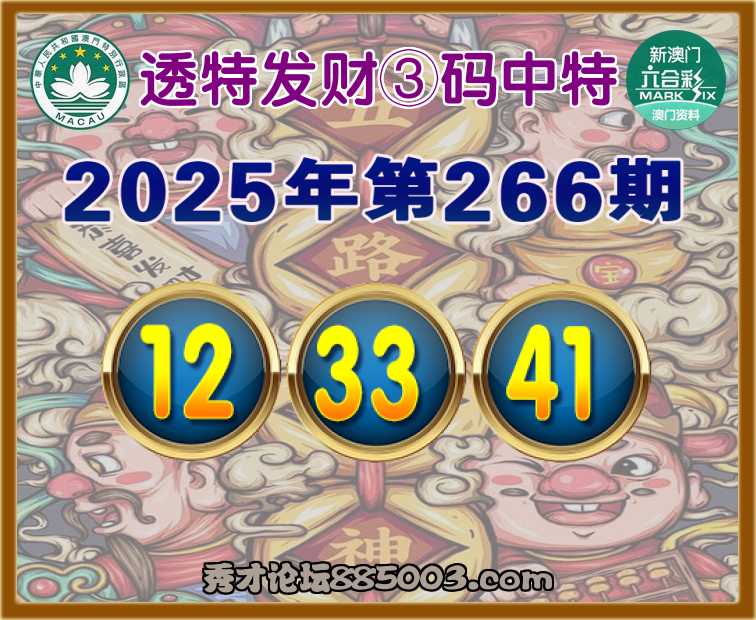 266期:【透特发财】 🚣③码中特🚣【12.33.41】开:41