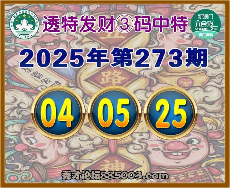 273期:【透特发财】 🚣③码中特🚣【04.05.25】开:04