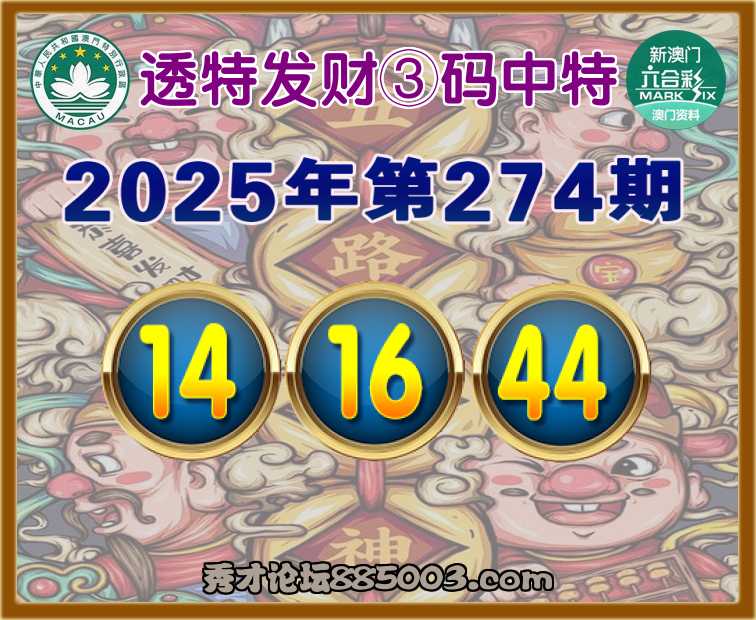 274期:【透特发财】 🚣③码中特🚣【14.16.44】开:44