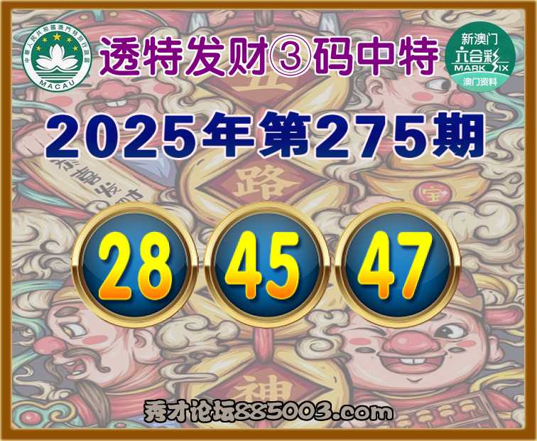 275期:【透特发财】 🚣③码中特🚣【28.45.47】开:45
