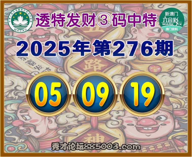 276期:【透特发财】 🚣③码中特🚣【05.09.19】开:09