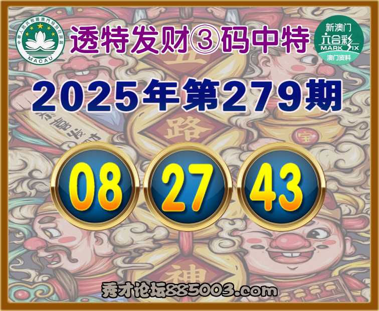 279期:【透特发财】 🚣③码中特🚣【08.27.43】开:27