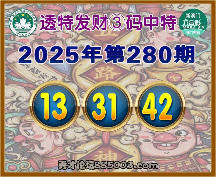 280期:【透特发财】 🚣③码中特🚣【13.31.42】开:42