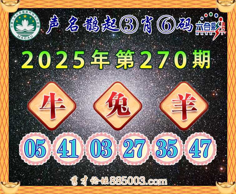 270期:〖声名鹊起〗 🚣③肖⑥码🚣【牛兔】开:羊35
