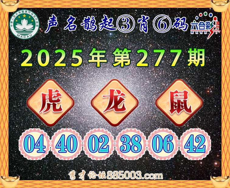 277期:〖声名鹊起〗 🚣③肖⑥码🚣【龙鼠】开:虎16