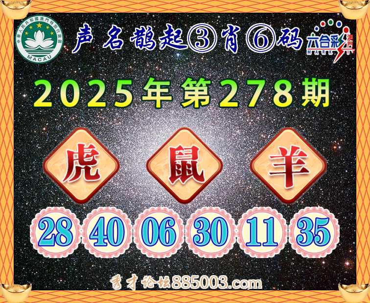 278期:〖声名鹊起〗 🚣③肖⑥码🚣【鼠羊】开:虎28